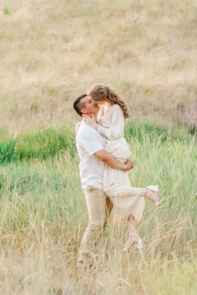 No matter where we shoot, golden hour elevates it. A simple field feels romantic. An urban spot feels cinematic. A mountain view feels unreal. The light enhances the environment without overpowering you.