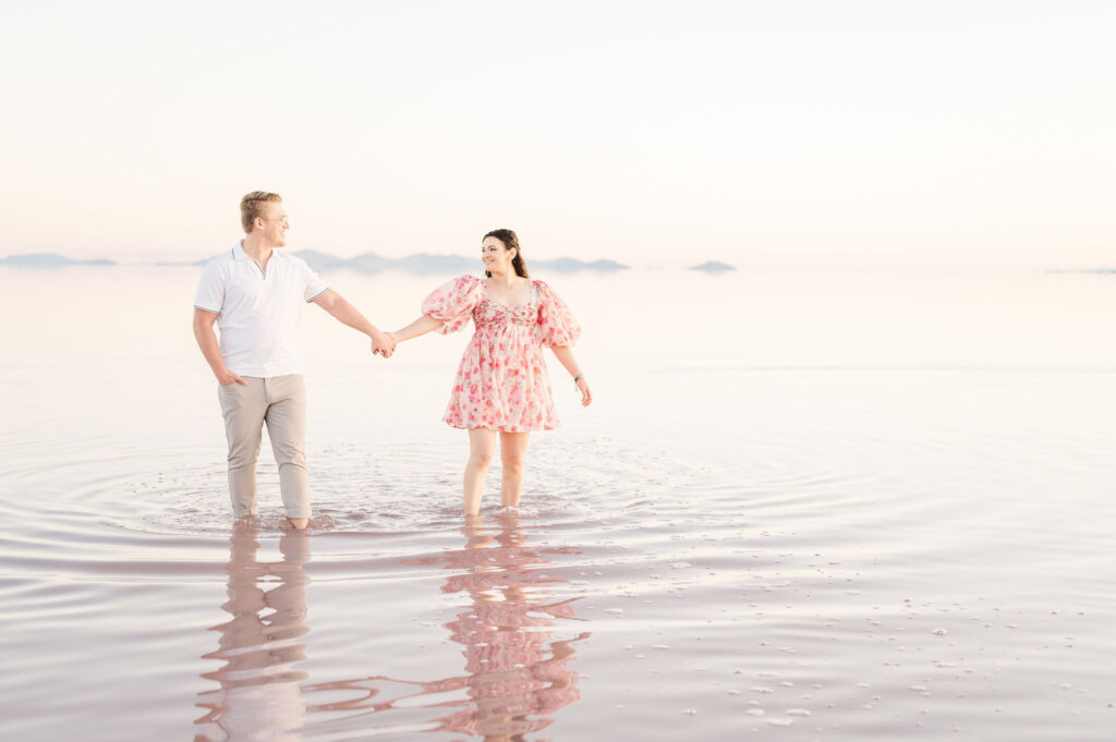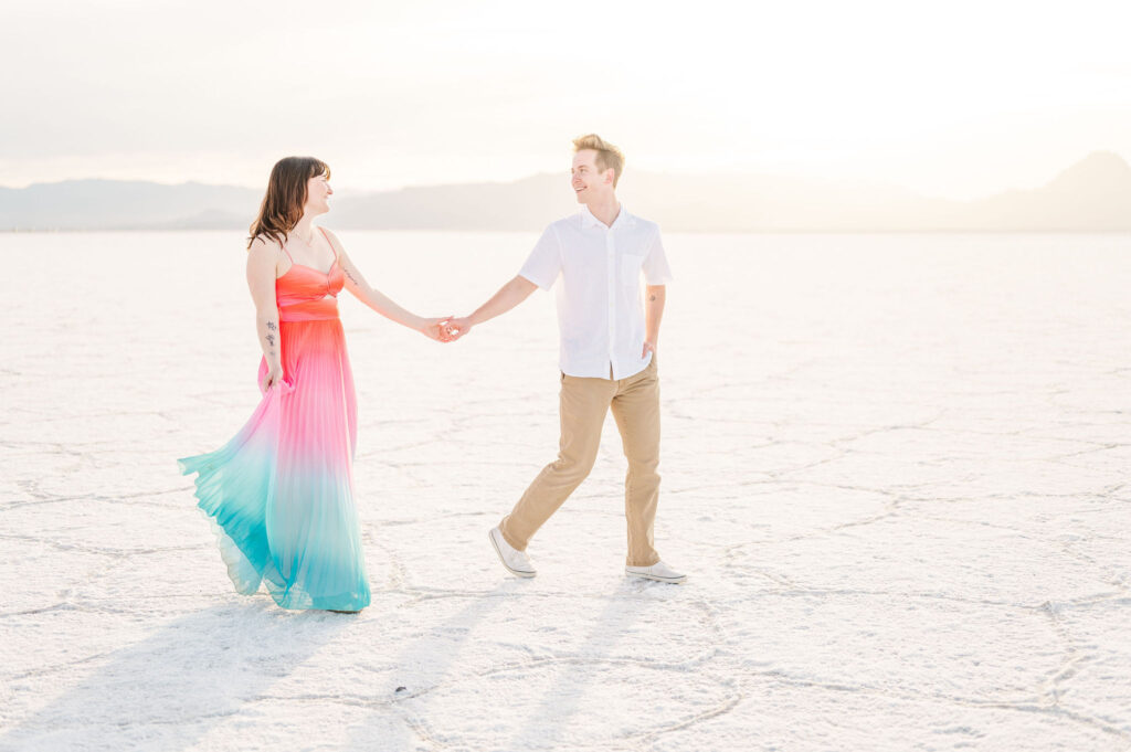 If you already have wedding colors, bring that palette into your outfits so everything feels cohesive as you move through your planning process. If you have not picked colors yet, neutrals are the safest and most photogenic option. Soft colors like cream, tan, light blue or muted pastels work beautifully. They compliment all skin tones and look good in any location we choose. Try to avoid neon or extremely bold colors because they reflect onto your skin and can be distracting.