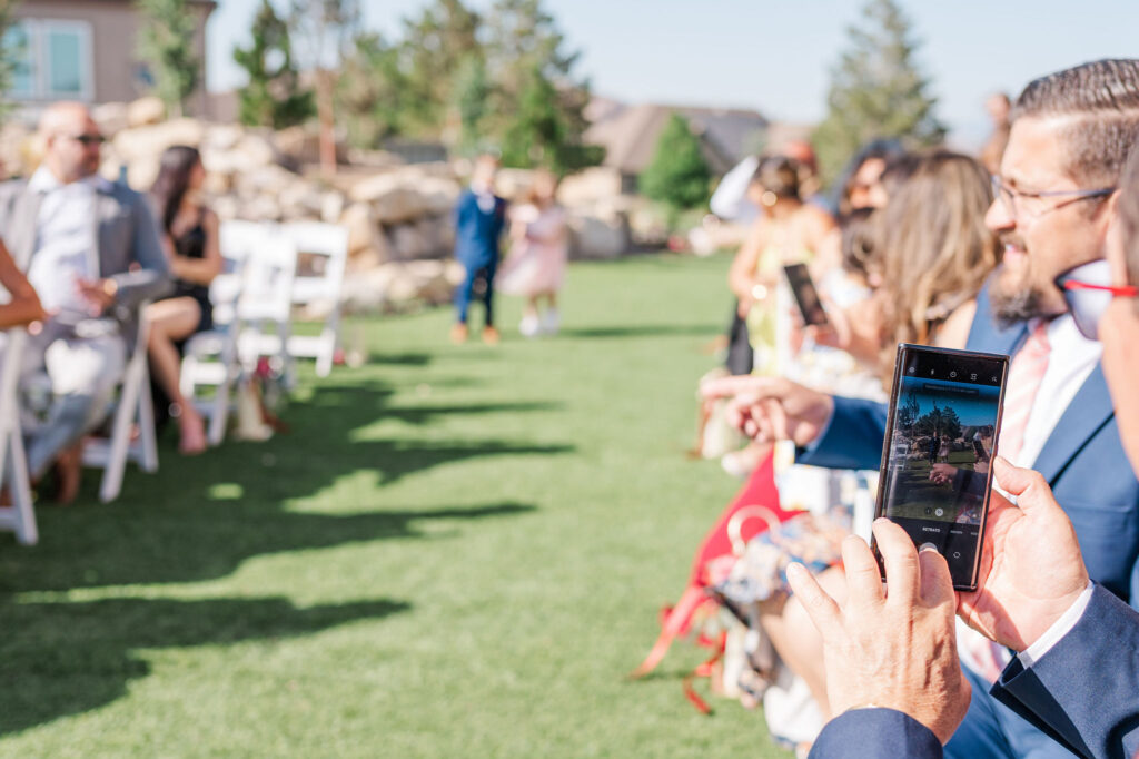 Your officiant can also gently remind guests before you walk down the aisle. Kind and clear is always enough. We have even seen some officiants let everyone take a pictures first and then start the ceremony with no more phones. This helps people really put the phone away and enjoy the ceremony since they got their picture.