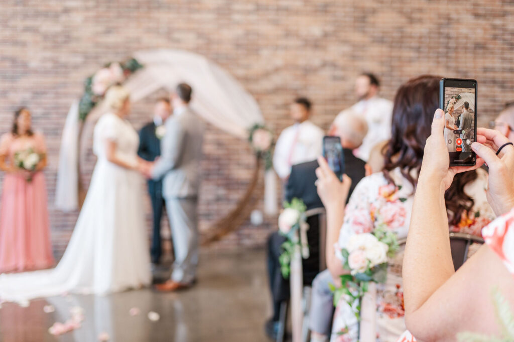 An unplugged wedding simply means asking your guests to put their phones away during the ceremony. Sometimes it is just for the vows. Sometimes it is for the whole ceremony. Sometimes couples extend it into the reception.